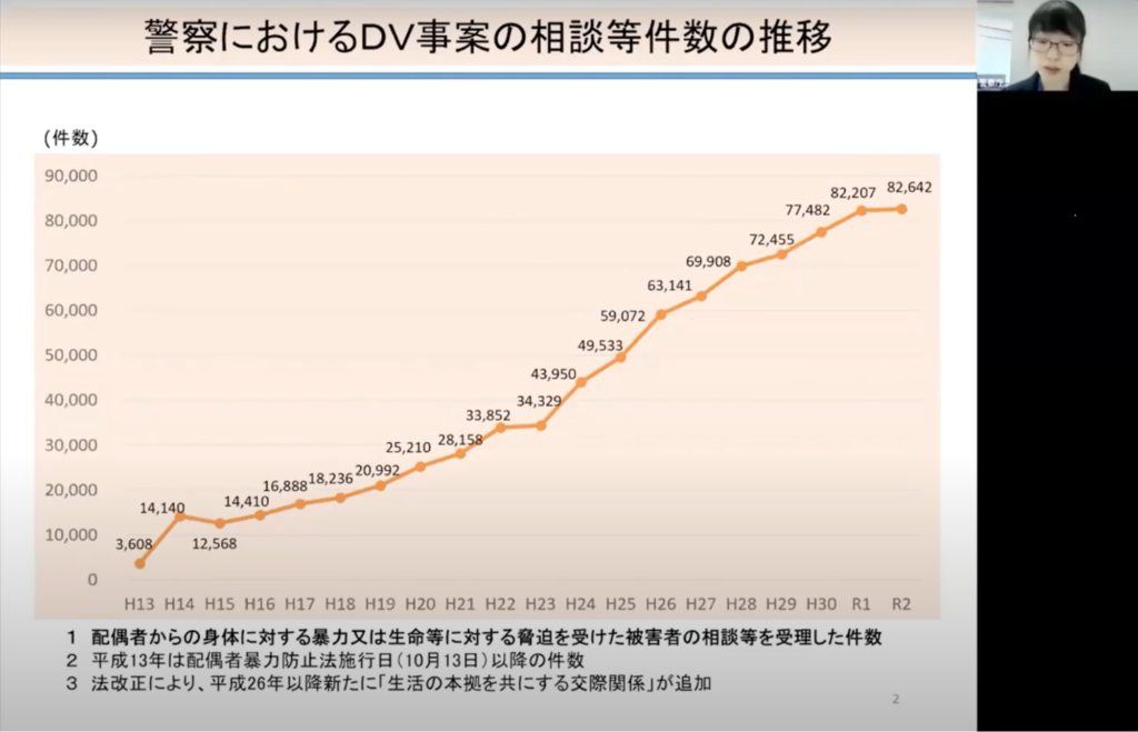 こうした取り組みの結果、20年以上前は年間1万件未満だったDVの通報件数は、現在では年間10万件にまで増えたという。<これからの展望>